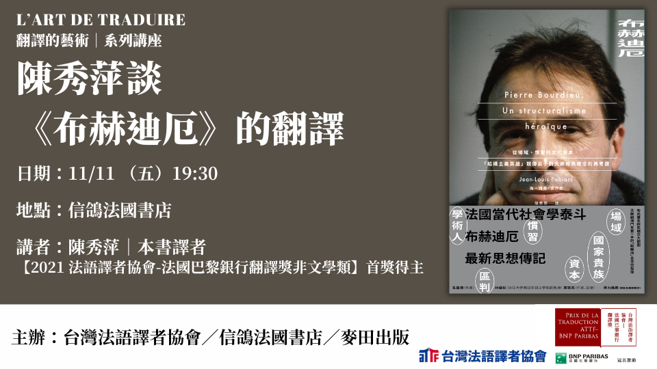 2021【台灣法語譯者協會-法國巴黎銀行翻譯獎】非文學類首獎得主講座