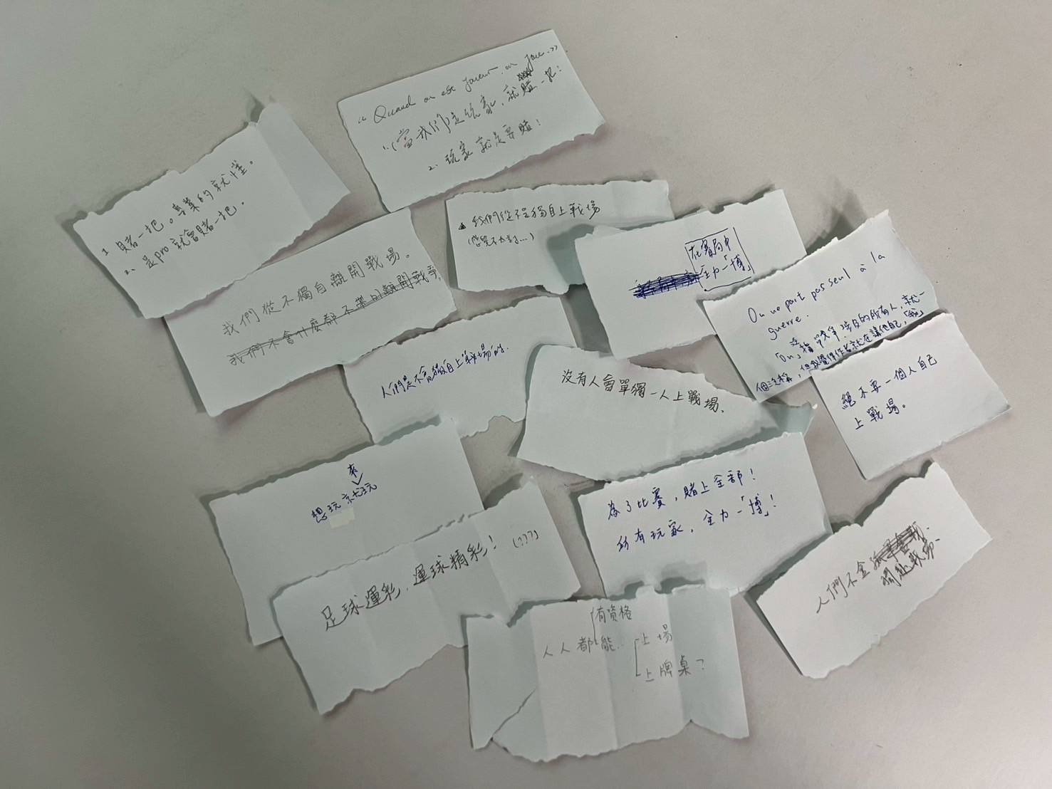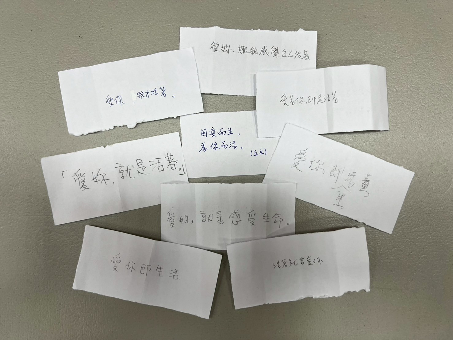 今年的翻譯工作坊幾乎完全手工,很有人味,很不AI。桂音導師看出新手I人,貼心地讓學員匿名投入自己當下完成的翻譯。T’aimer, c’est vivre. 結果竟然沒有出現一模一樣的句子。有時越簡單,越生活化的字,越難翻譯。