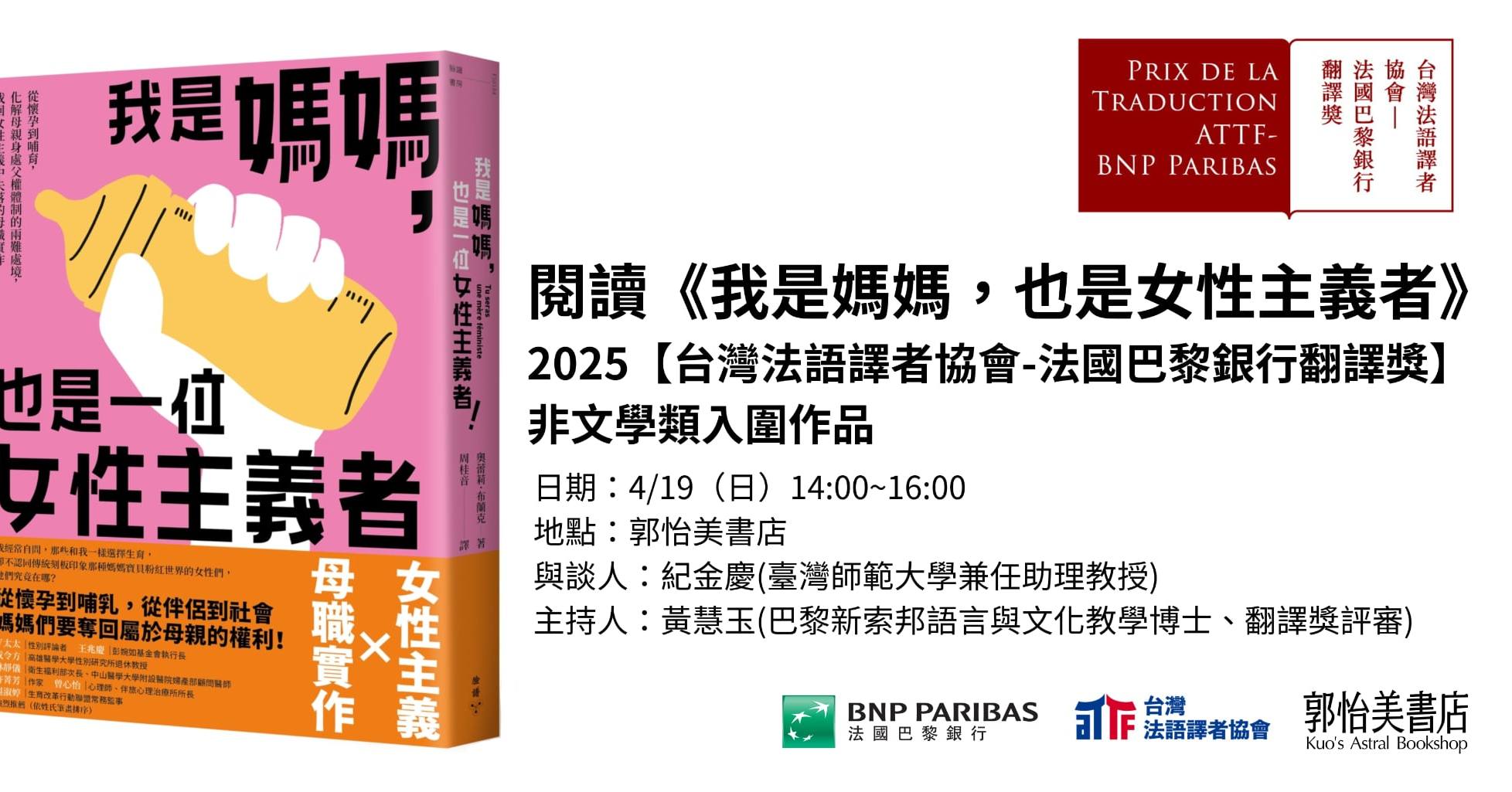 閱讀《我是媽媽,也是一位女性主義者》 講座:2025《法語譯者協會-法國巴黎銀行翻譯獎》非文學類入圍作品