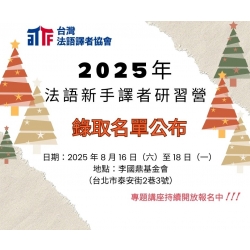 2025年新手譯者研習營報名開跑!2025 台灣法語譯者協會主辦的新手譯者研習營正式開跑!歡迎各位有興趣的朋友把握機會報名~ -