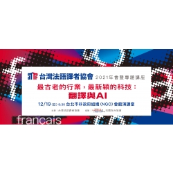 2021專題講座暨會員大會:【最古老的行業,最新穎的科技:翻譯與AI】2021年即將結束,隨著科技不斷進步,身為譯者,該如何看待本世紀的人工智慧熱潮? 2021台灣法語譯者協會年會暨專題講座邀請大家一起來聊聊各位對AI翻譯的看法。 -
